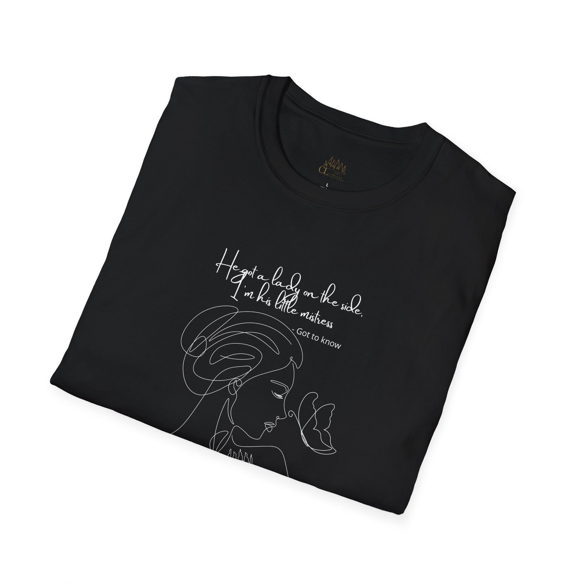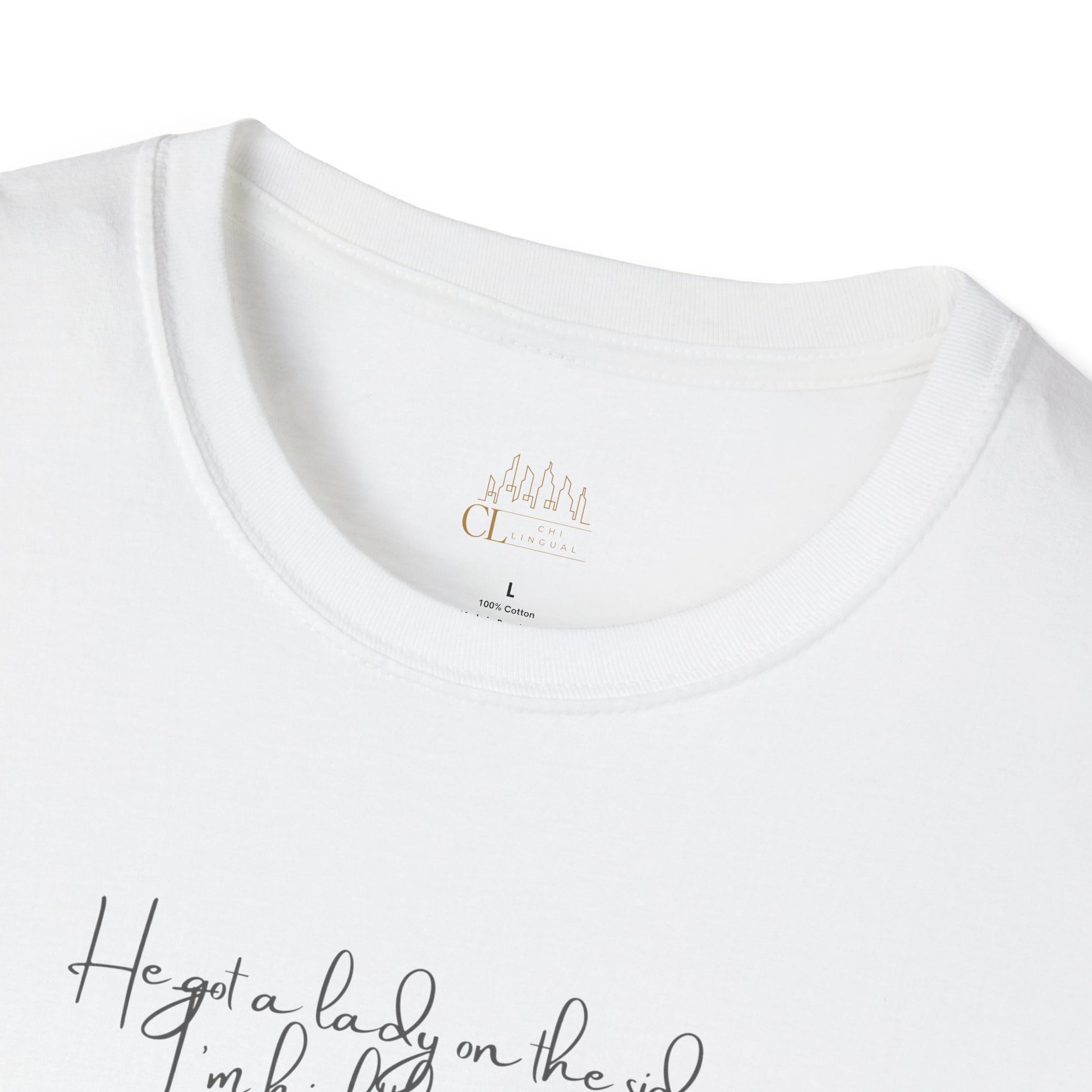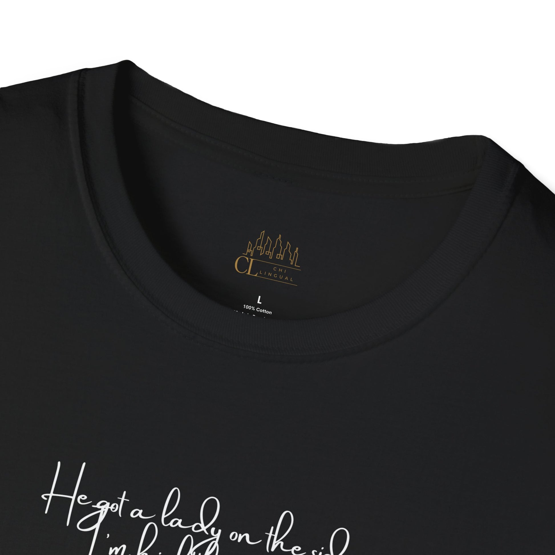 Hip-hop T-shirt featuring bilingual lyrics from the Chi-lingual brand. This versatile unisex T-shirt is made from durable ring-spun cotton fabric, ensuring a smooth and comfortable wearing experience. Perfect for music lovers and fashion enthusiasts, this shirt can be worn on casual outings or music events. Ideal for hip-hop enthusiasts and fans of bilingual music. Relevant for music festivals, concerts, and everyday wear.