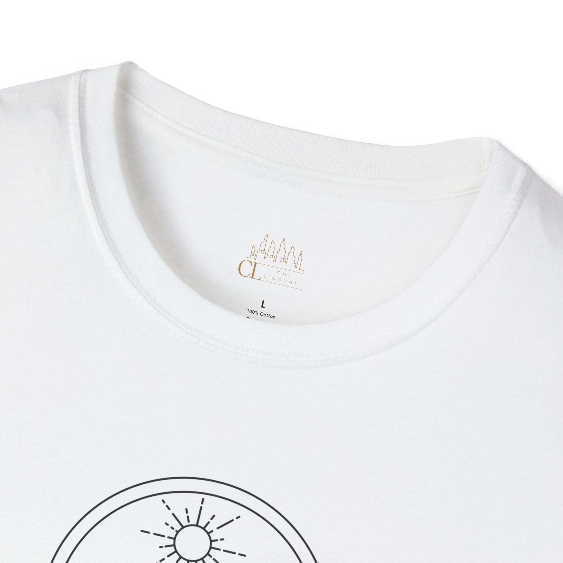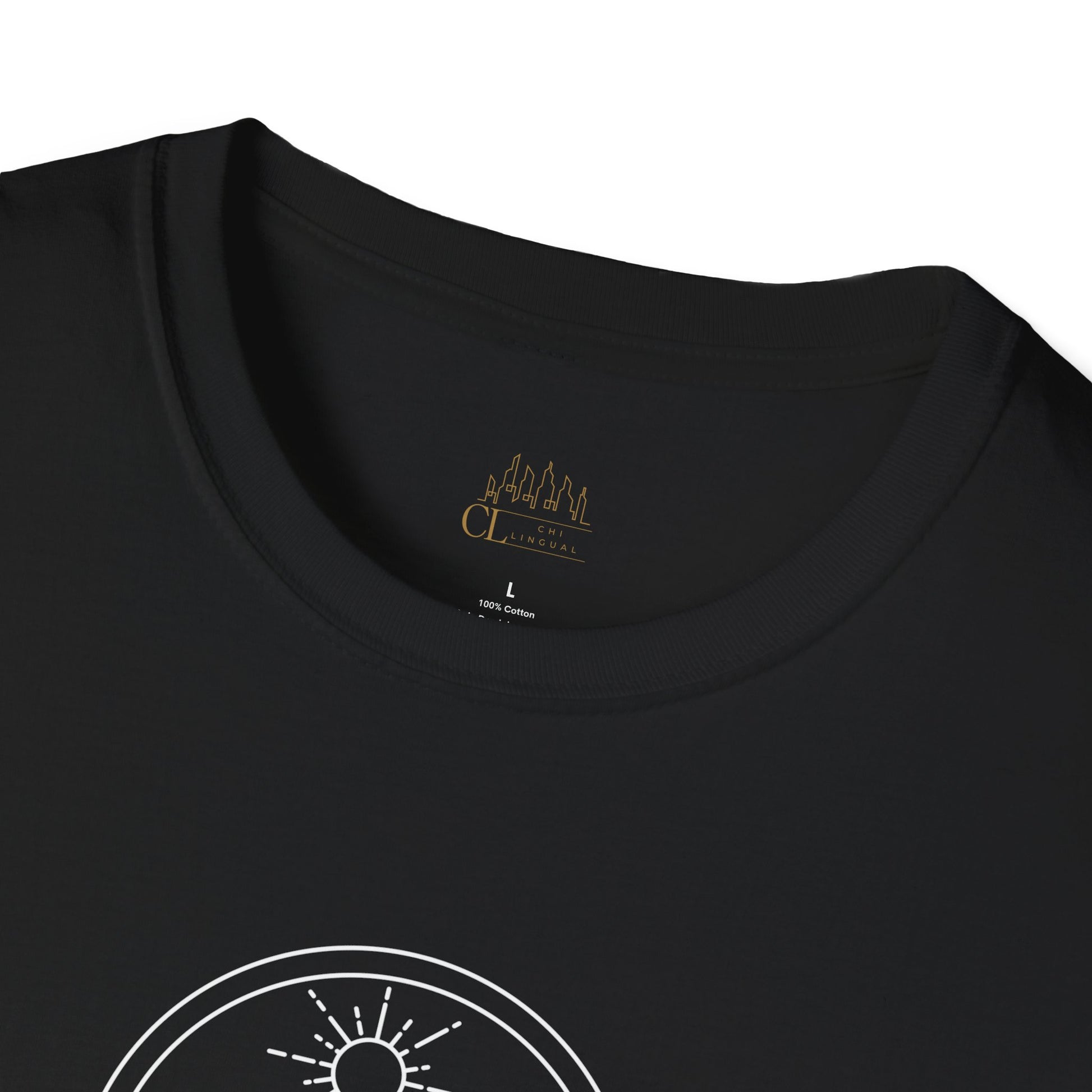 Hip-hop T-shirt featuring bilingual lyrics from the Chi-lingual brand. This versatile unisex T-shirt is made from durable ring-spun cotton fabric, ensuring a smooth and comfortable wearing experience. Perfect for music lovers and fashion enthusiasts, this shirt can be worn on casual outings or music events. Ideal for hip-hop enthusiasts and fans of bilingual music. Relevant for music festivals, concerts, and everyday wear.