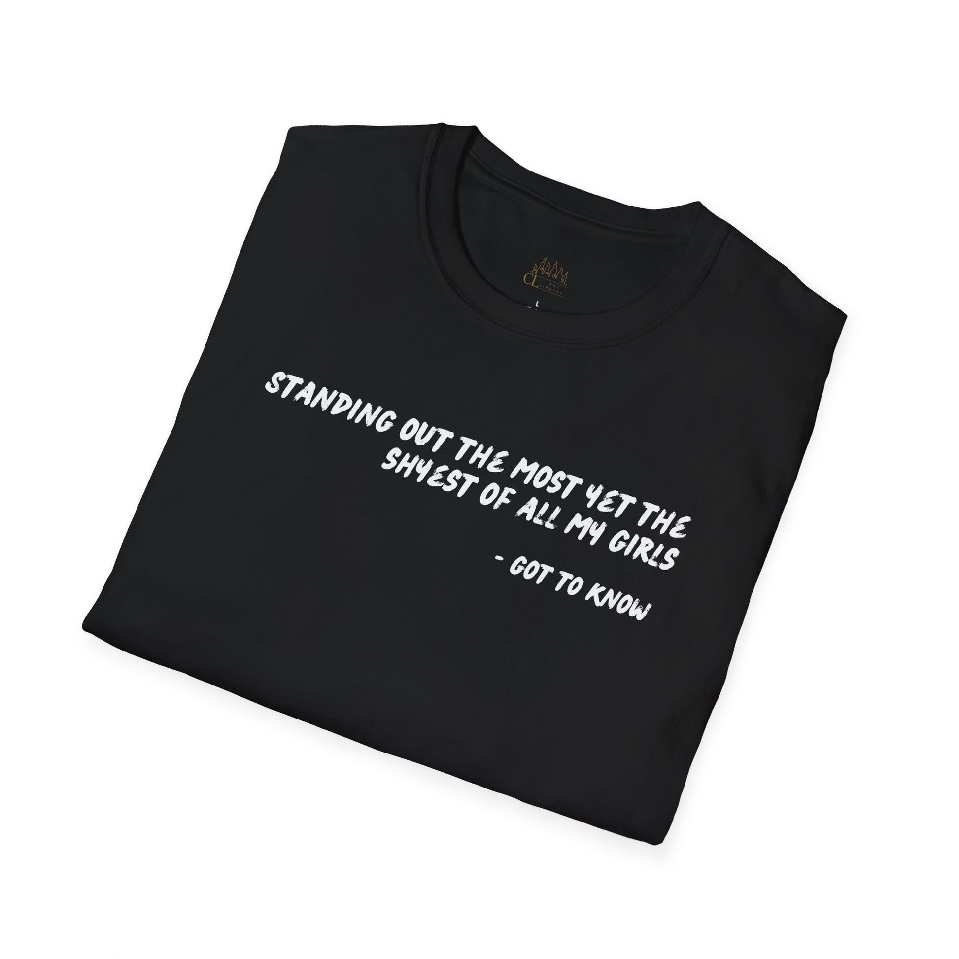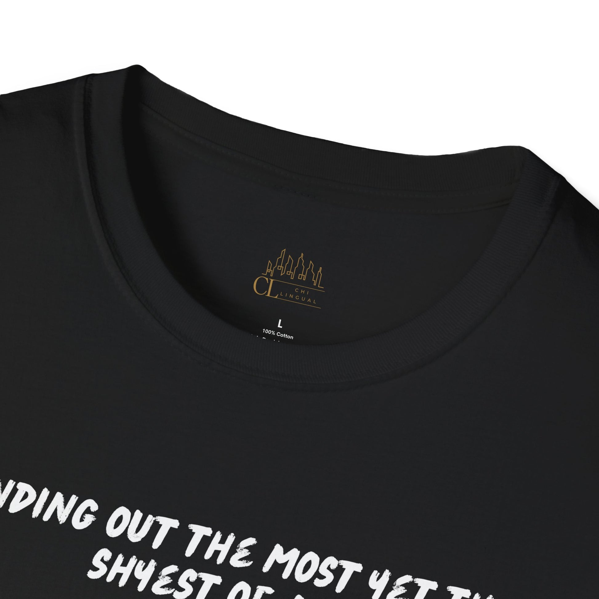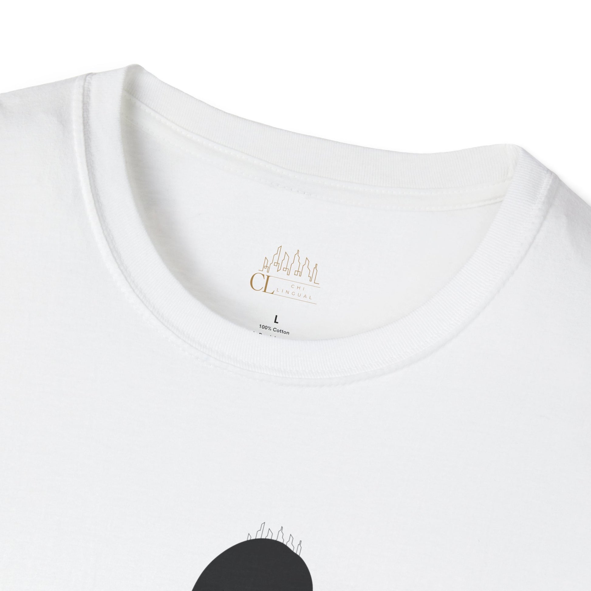 Hip-hop T-shirt featuring bilingual lyrics from the Chi-lingual brand. This versatile unisex T-shirt is made from durable ring-spun cotton fabric, ensuring a smooth and comfortable wearing experience. Perfect for music lovers and fashion enthusiasts, this shirt can be worn on casual outings or music events. Ideal for hip-hop enthusiasts and fans of bilingual music. Relevant for music festivals, concerts, and everyday wear.